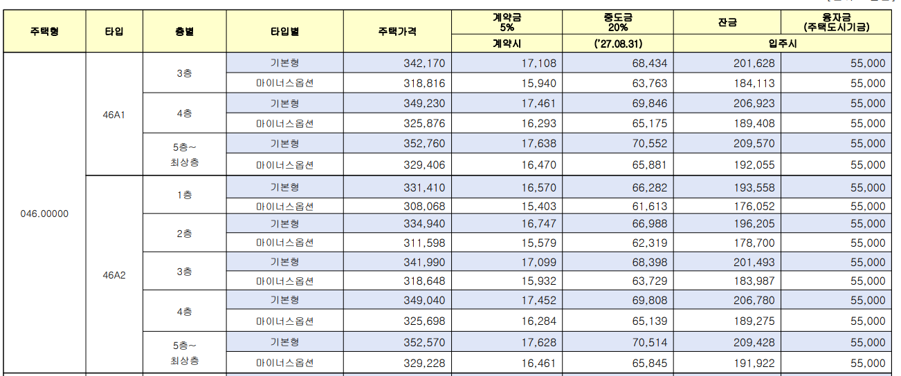 | 전용 59㎡ | 3억원 ~ 4억원 (예상) |